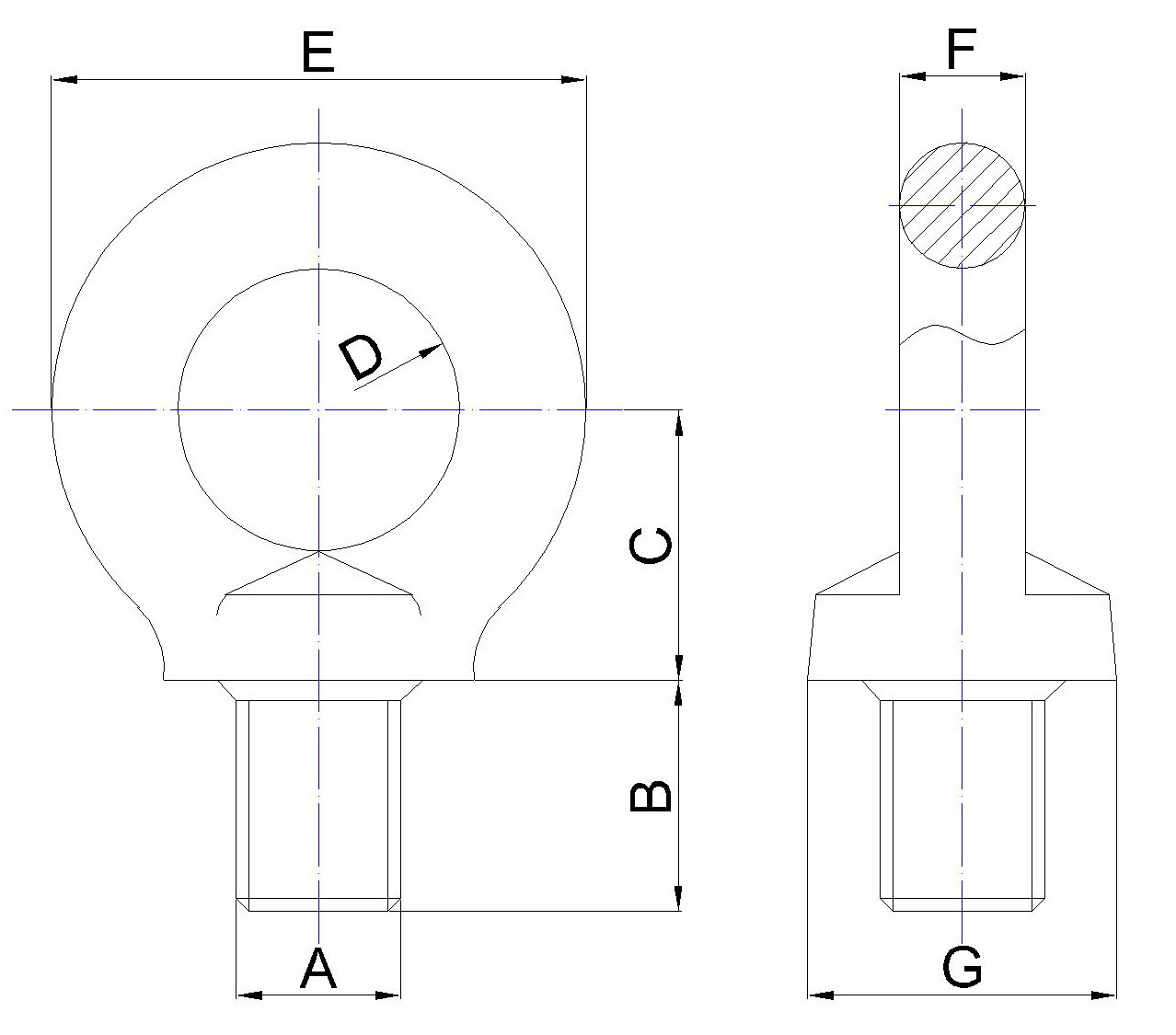 Рым-болт DIN 580 – крепёжное гальванизированное устройство, изготовленное из углеродистой стали с белым оцинкованным покрытием. Имеет монолитную литую форму в виде овального кольца-ушка на площадке с резьбовой шпилькой посередине, для вкручивания в отверстие.